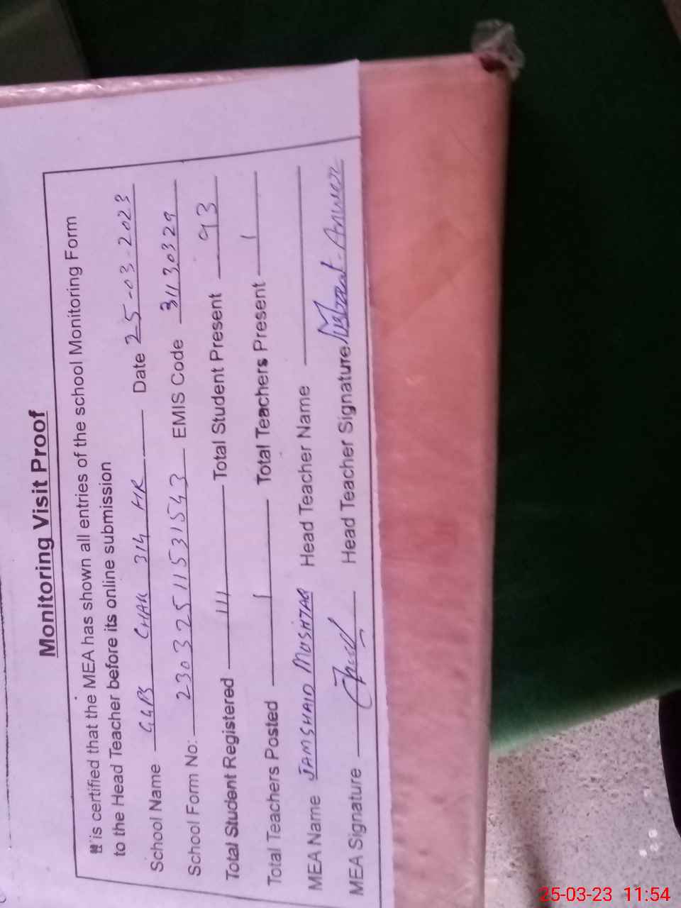 | EMIS Code: 31130329 | Name of School: GGPS CHAK 314/HR | |||