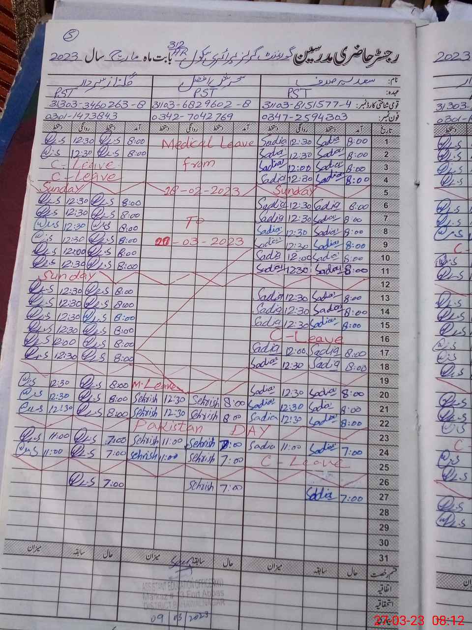 | Leave | Duty | Absent | Maternity | Medical | Ex- Pak |
