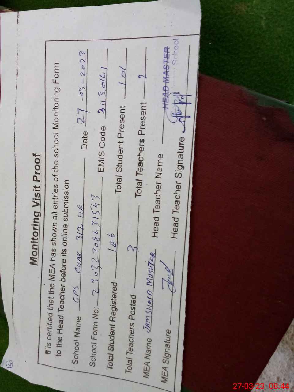 | EMIS Code: 31130141 | Name of School: GPS CHAK 312/HR | |||