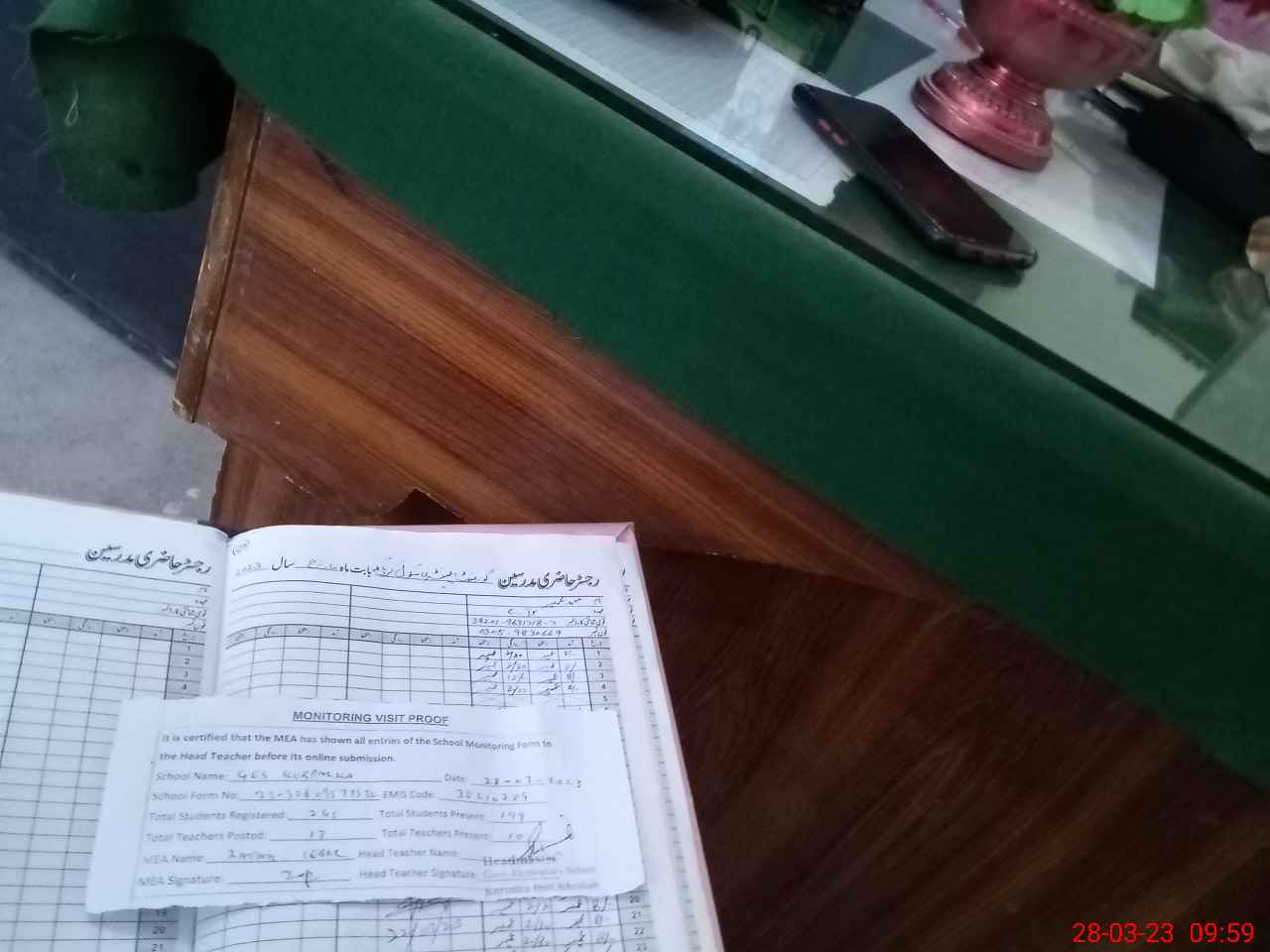 | Attendance Register | Head Teacher | MEA with School | Visit Proof |