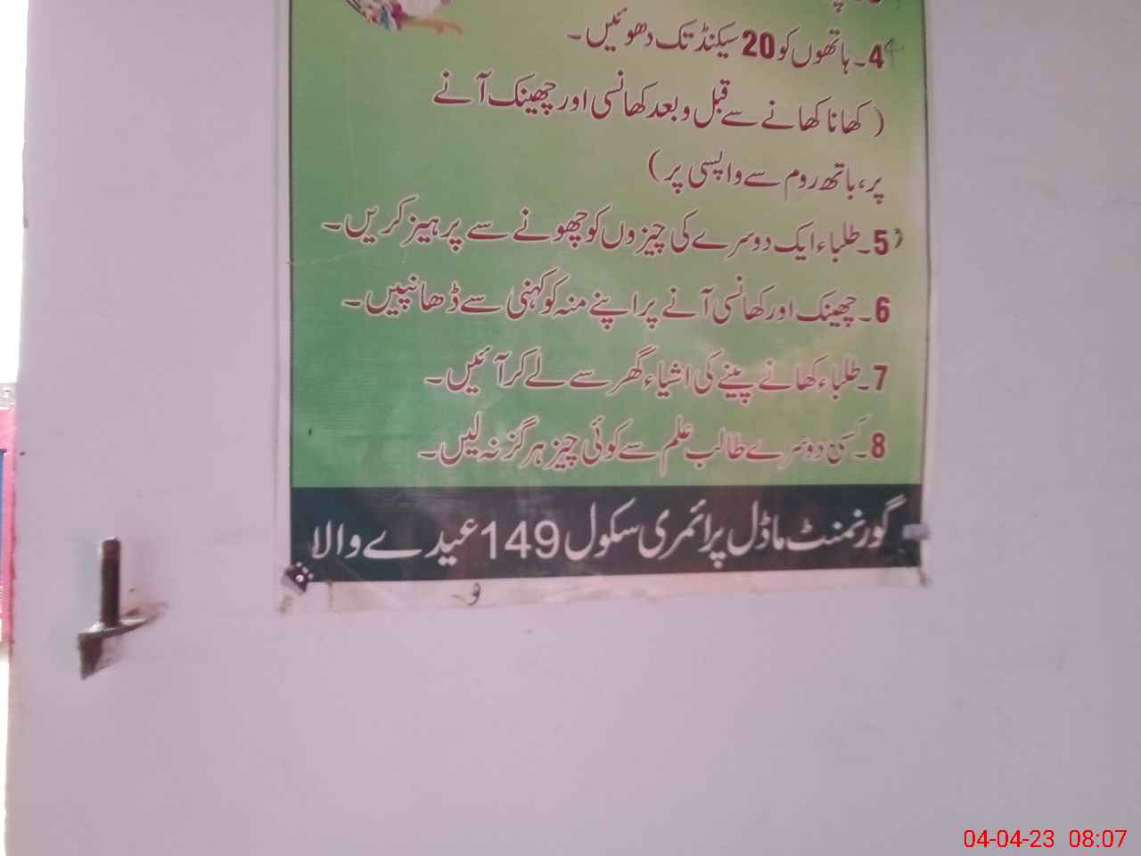 | EMIS Code: 31140477 | Name of School: GGPS 149/6-R EIDAY WALA | |||