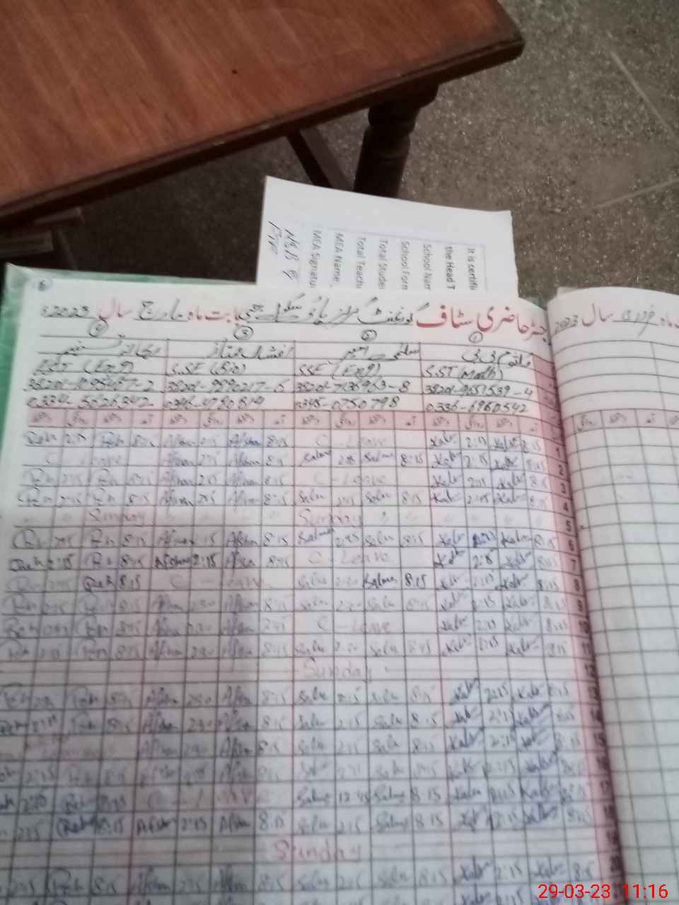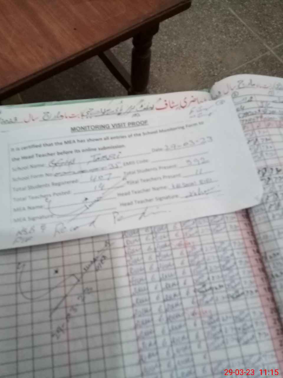 | Attendance Register | Head Teacher | MEA with School | Visit Proof |