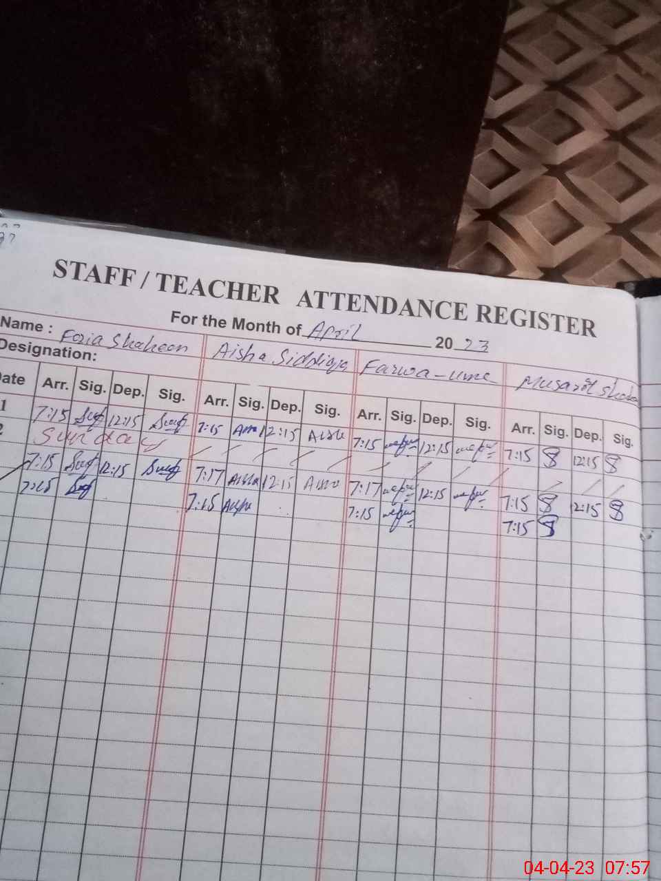 | Name: FO**** SH**** Designation: (School Headmaster's/Headmistress's) SST ARTS Phone/Cell Number: 03**** |