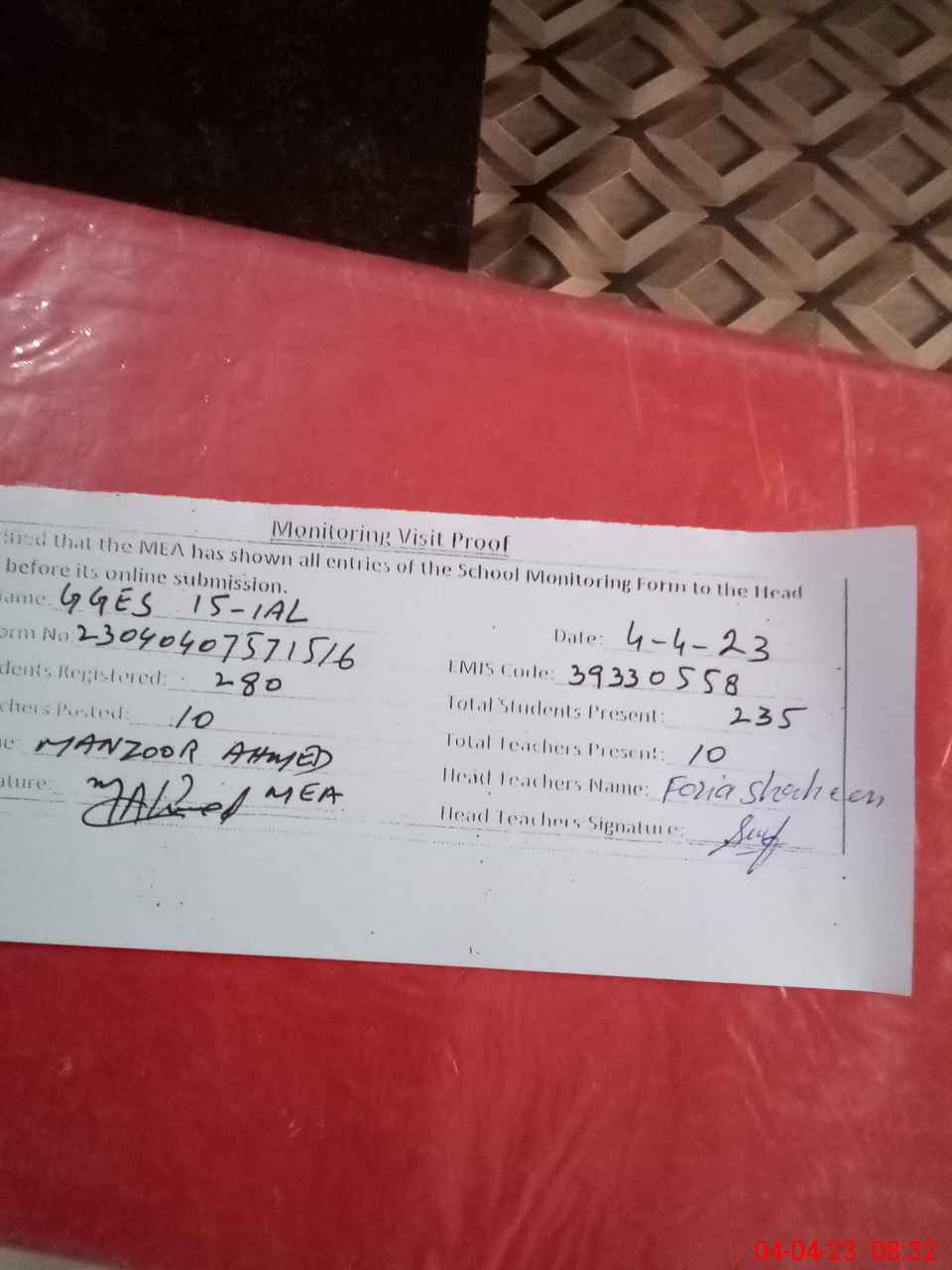 | EMIS Code: 39330558 | Name of School: GGES 15-1/AL | |||