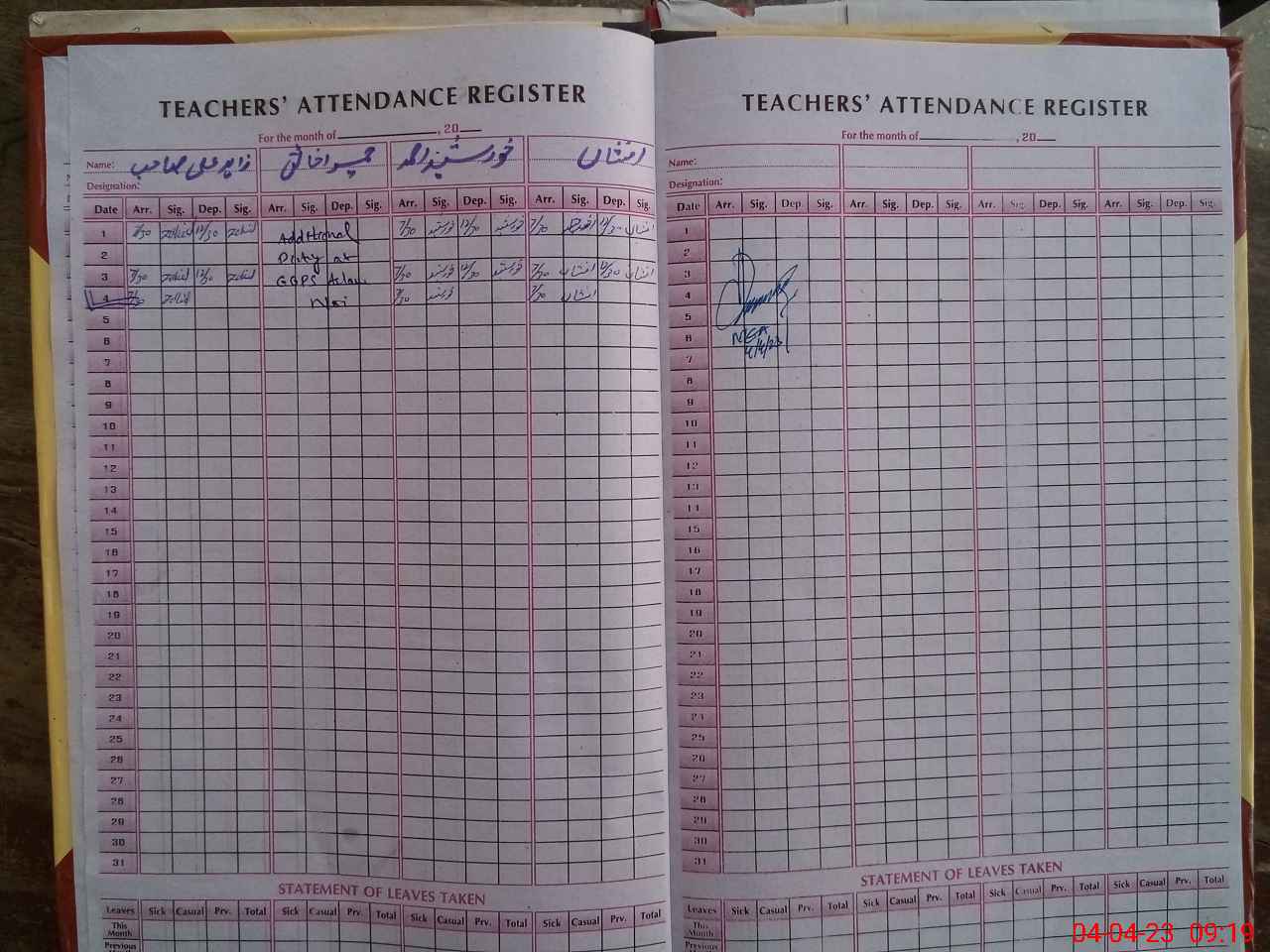 | Attendance Register | Head Teacher | MEA with School | Visit Proof |