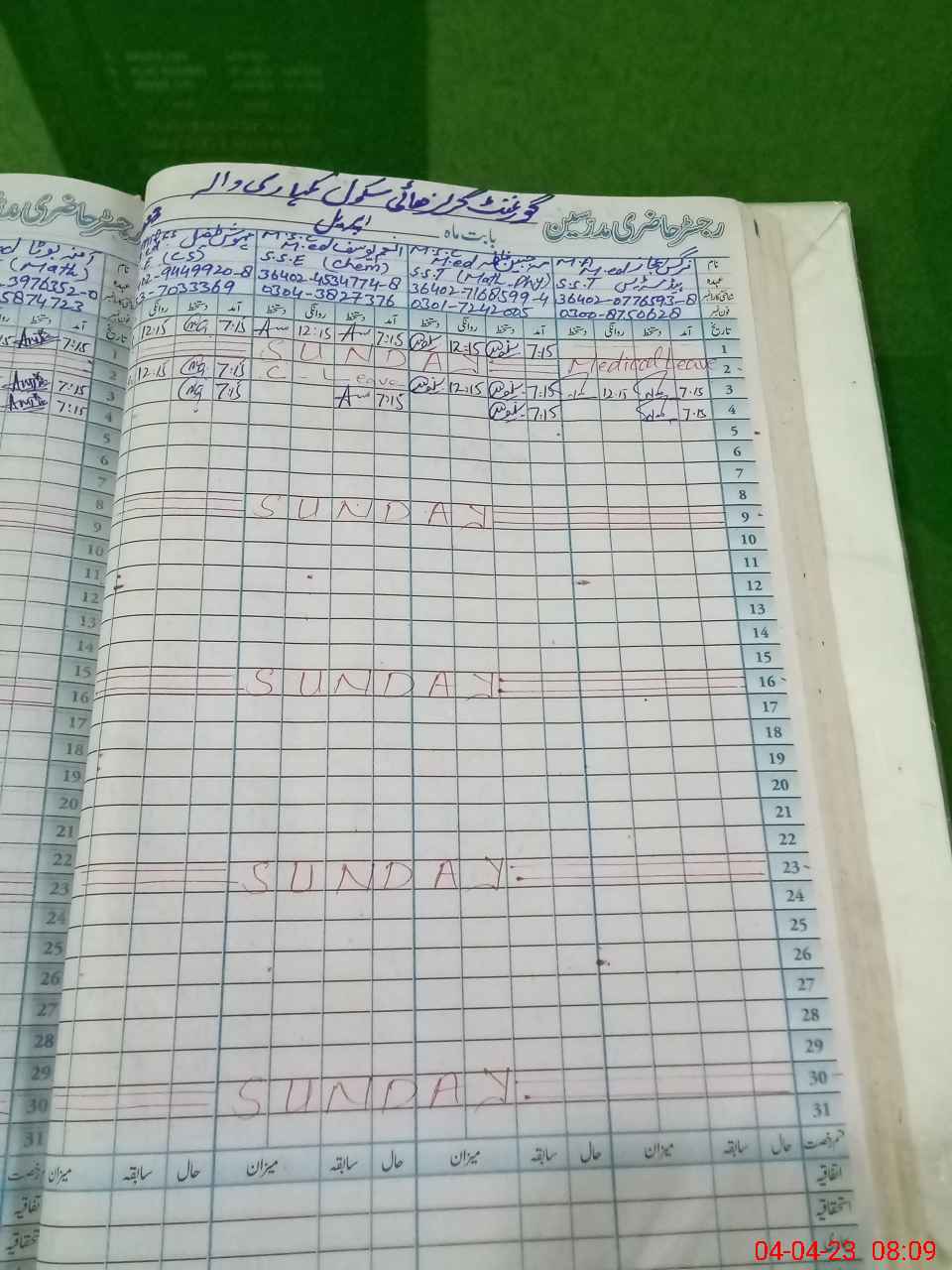 | Name: Ma**** Fa**** Designation: (School Headmaster's/Headmistress's) S.S.T.(Science ) Phone/Cell Number: 03**** |