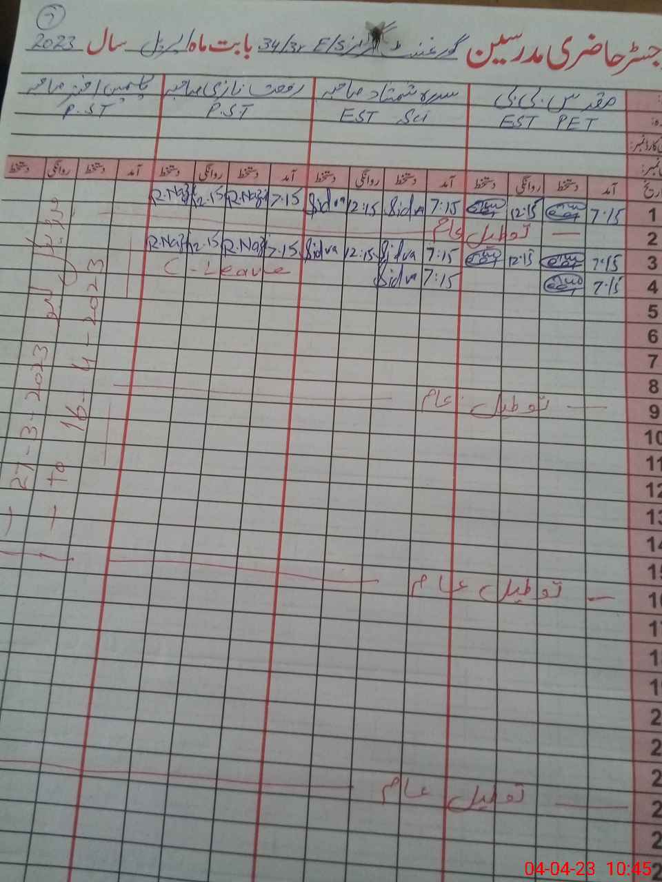 | 31**** | Ri**** Na**** | PST | Regular | 1 | 0 | 0 | 0 | 0 | 0 | 0 | 0 | 1 | Casual |