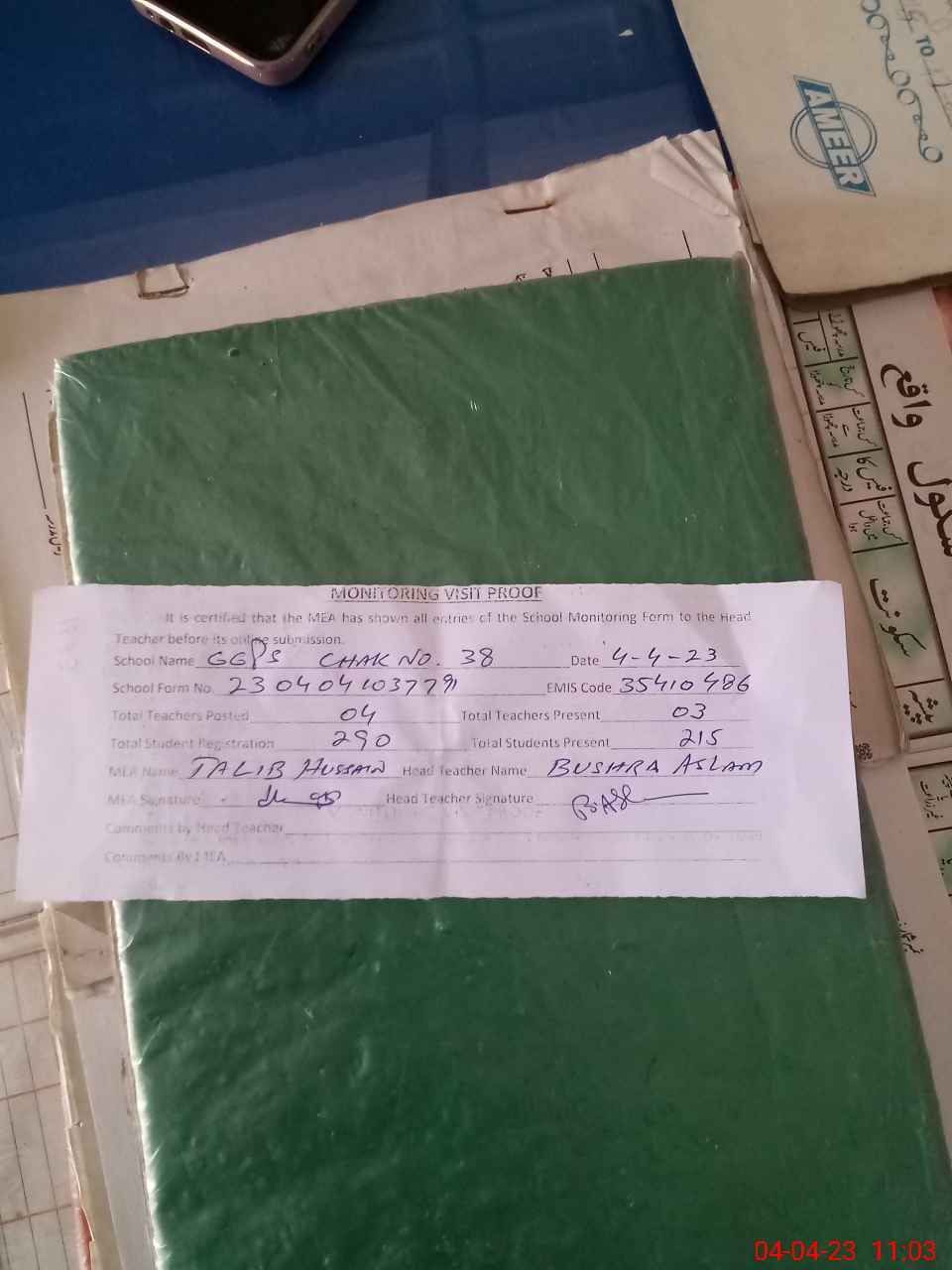| EMIS Code: 35410486 | Name of School: GGPS CHAK NO. 38 | |||