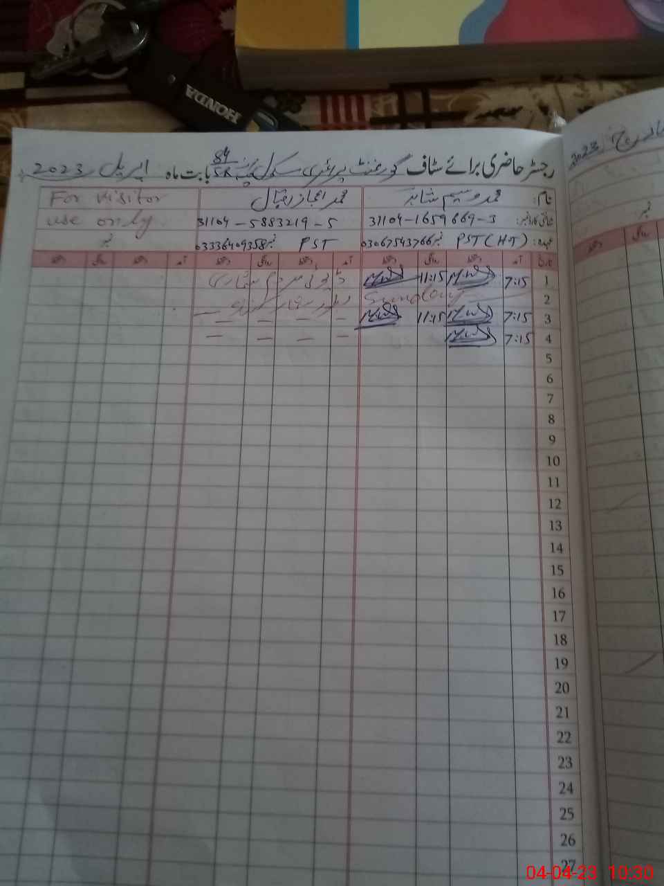| Name: MU**** WA**** Designation: (School Headmaster's/Headmistress's) PTC/JV Phone/Cell Number: 03**** |