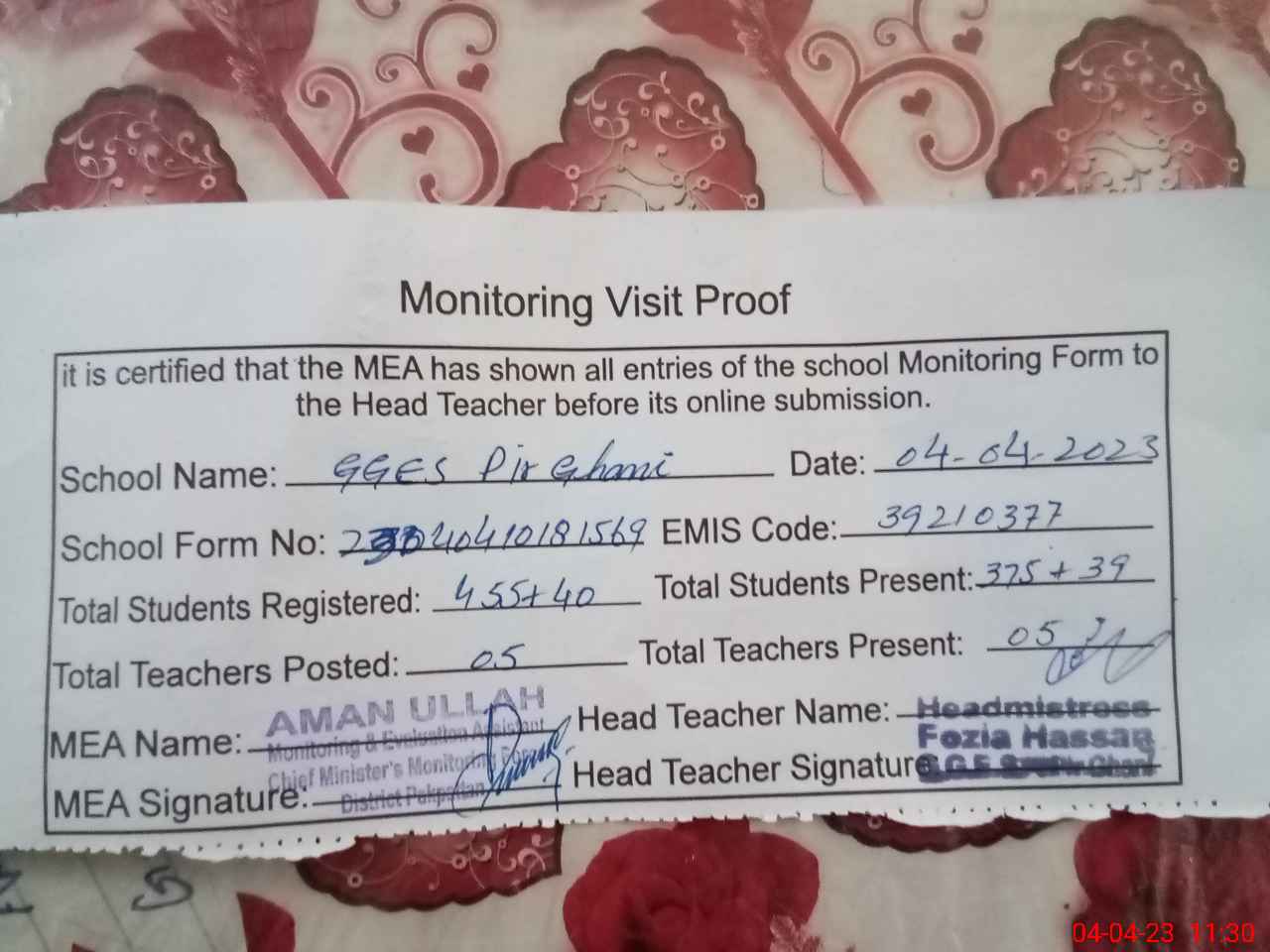 | EMIS Code: 39210377 | Name of School: GGES PIR GHANI | |||