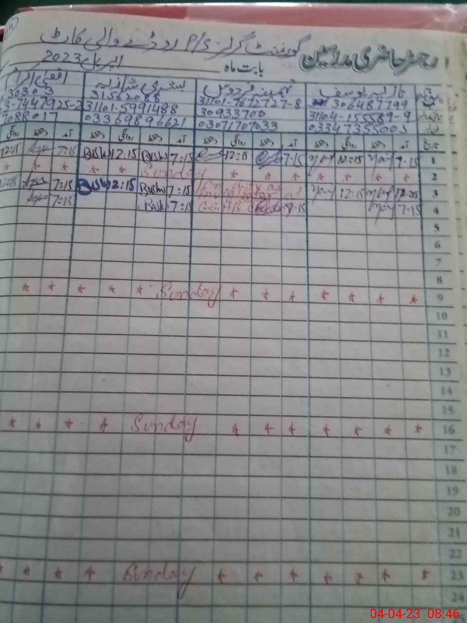 | CNIC | Full Name | Designation | R/C | Absence During Last Calender Month |