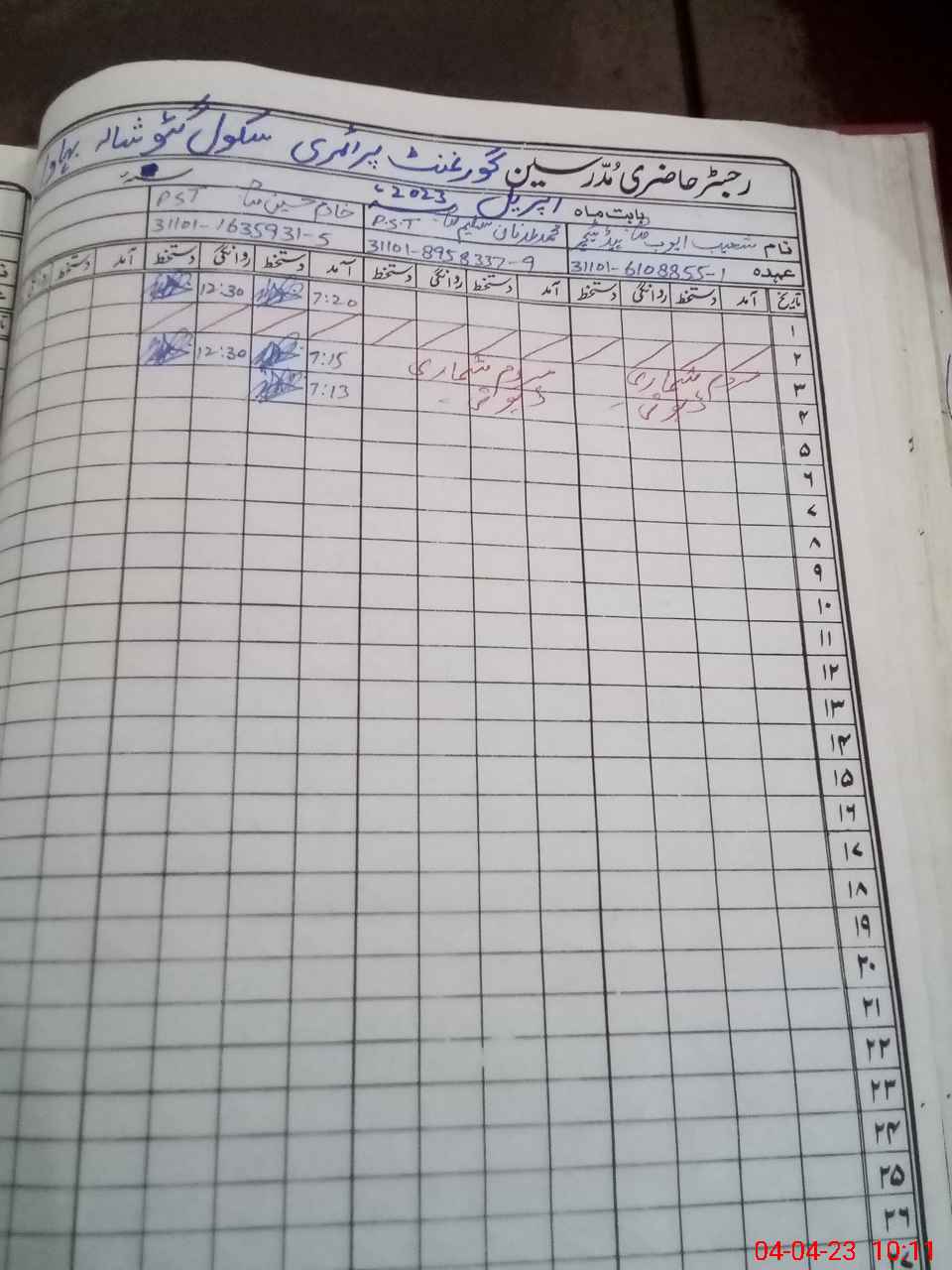 | Name: Sh**** Ay**** Designation: (School Headmaster's/Headmistress's) PST Phone/Cell Number: 03**** |