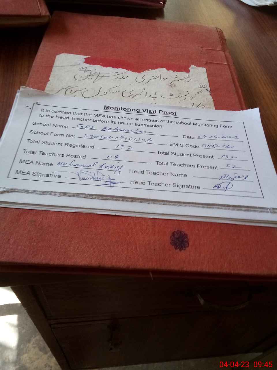 | EMIS Code: 31150160 | Name of School: GPS BEHRAAM SAR | |||