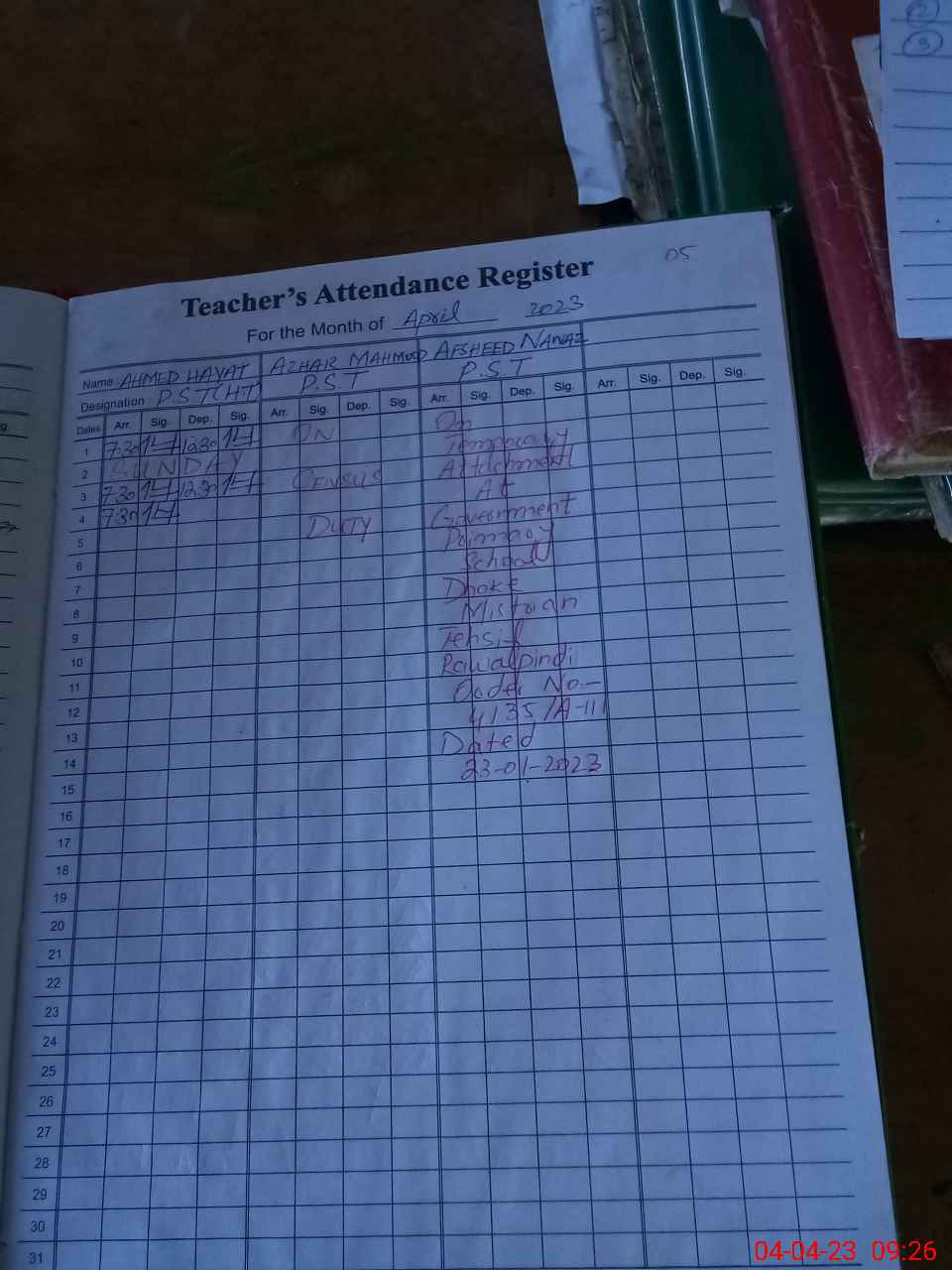 | Name: Ah**** Ha**** Designation: (School Headmaster's/Headmistress's) PST Phone/Cell Number: 03**** |