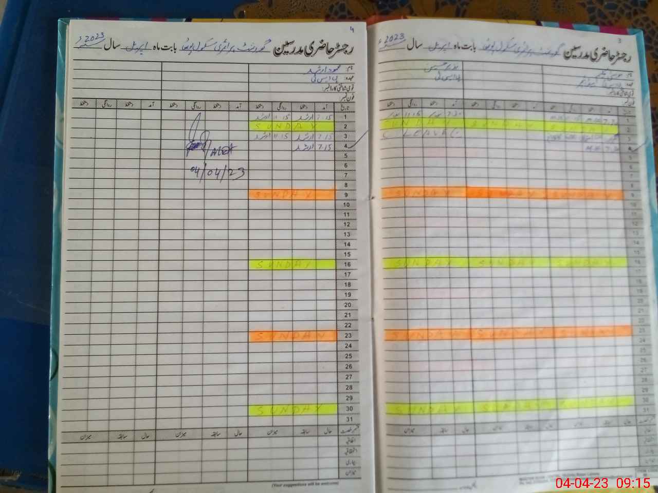 | Total no. of Classrooms: 4 No. of Classrooms Used for Teaching: 4 No. of Classrooms Storing Old Furniture, FTBs, etc: 0Comments if Any: PST Nazer Hussain absent due to leave not approved on SIS and record not Shown to MEA Also attendance left blank to till time |