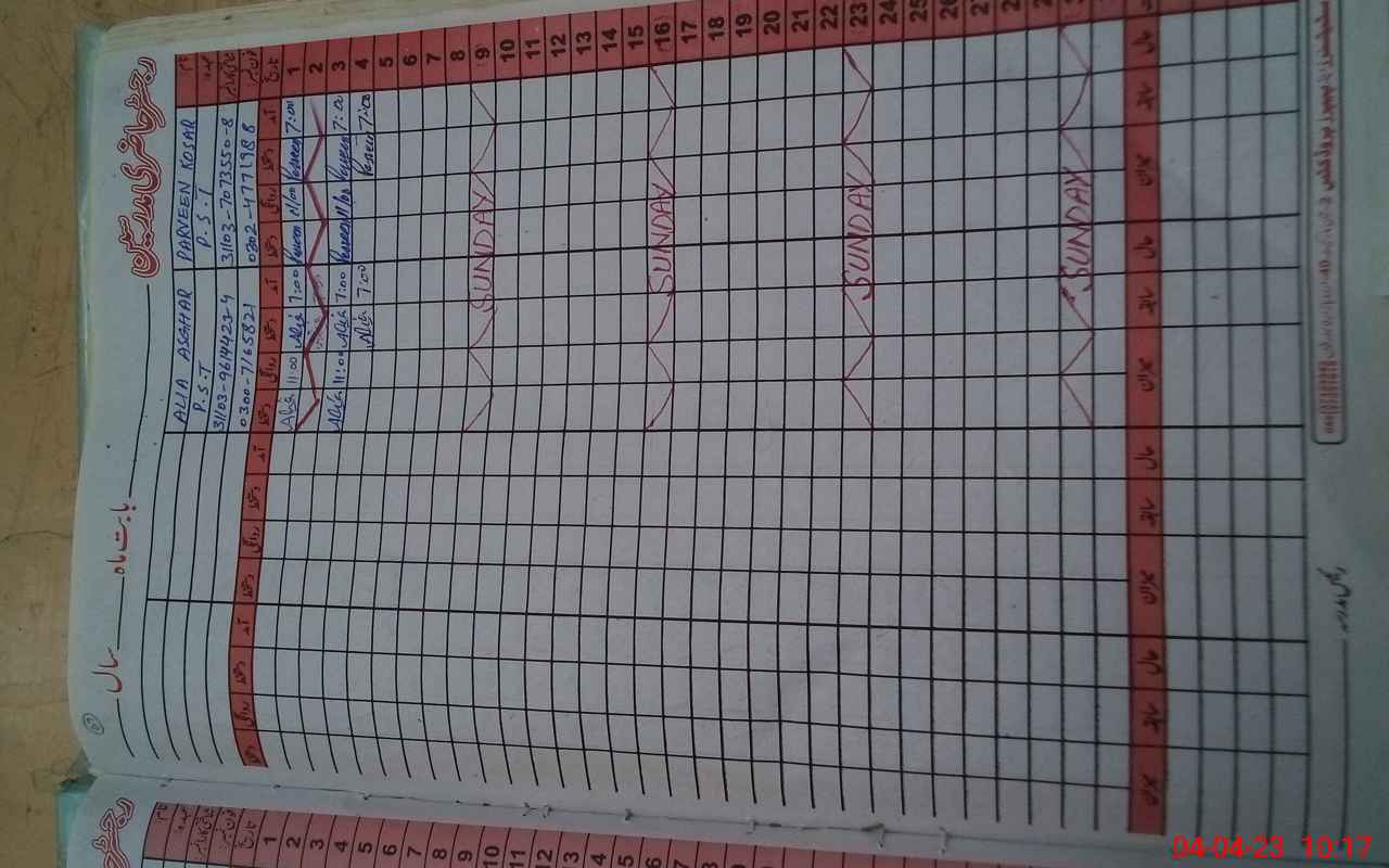 | CNIC | Full Name | Designation | R/C | Absence During Last Calender Month |