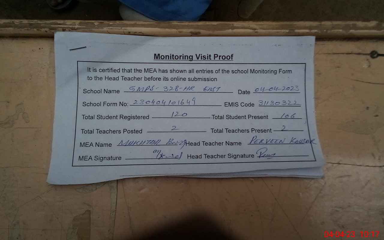 | EMIS Code: 31130322 | Name of School: GMPS CHAK NO. 328 HR (E) | |||