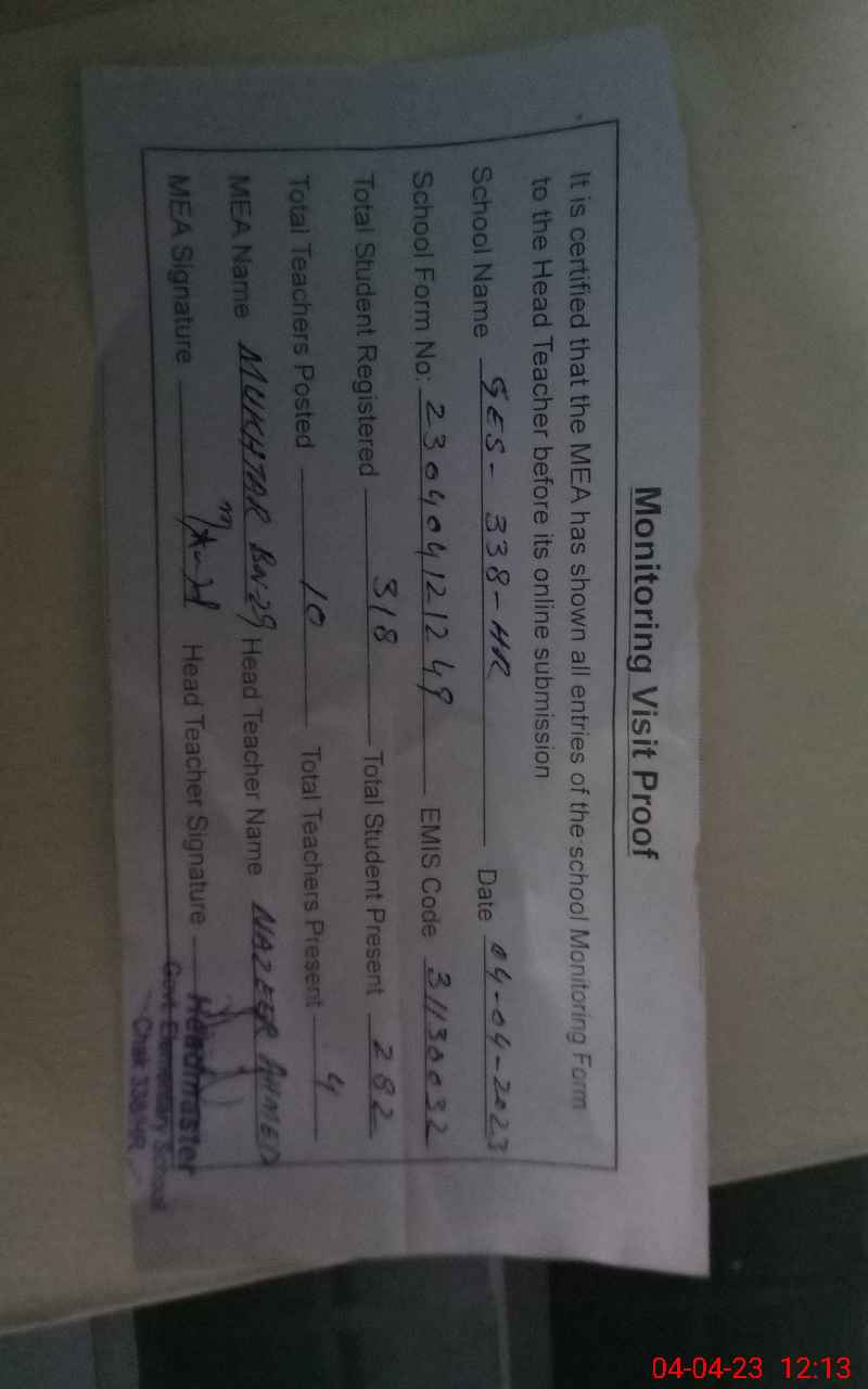 | EMIS Code: 31130032 | Name of School: GES CHAK 338/HR | |||