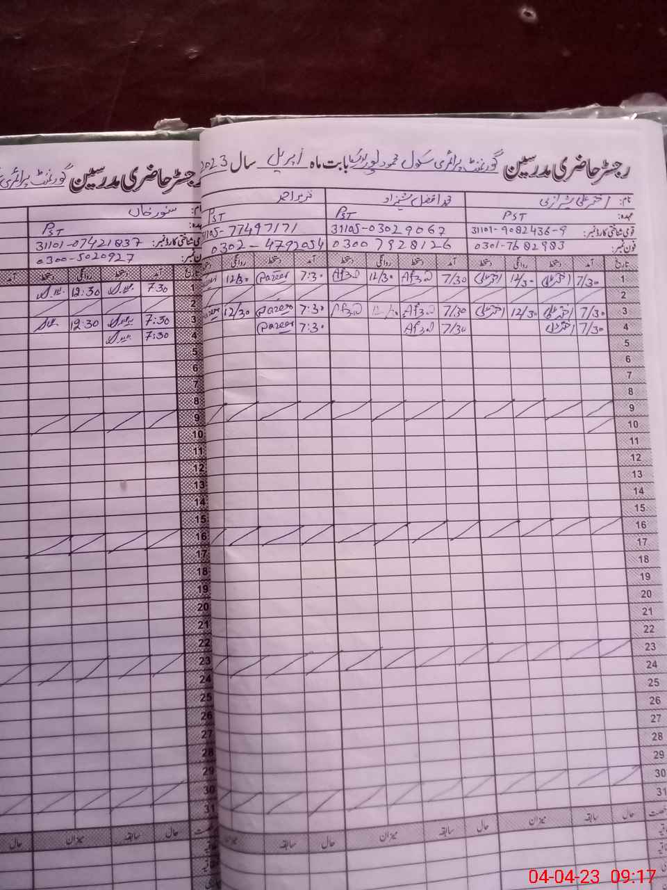 | Name: AK**** AL**** Designation: (School Headmaster's/Headmistress's) PST Phone/Cell Number: 03**** |