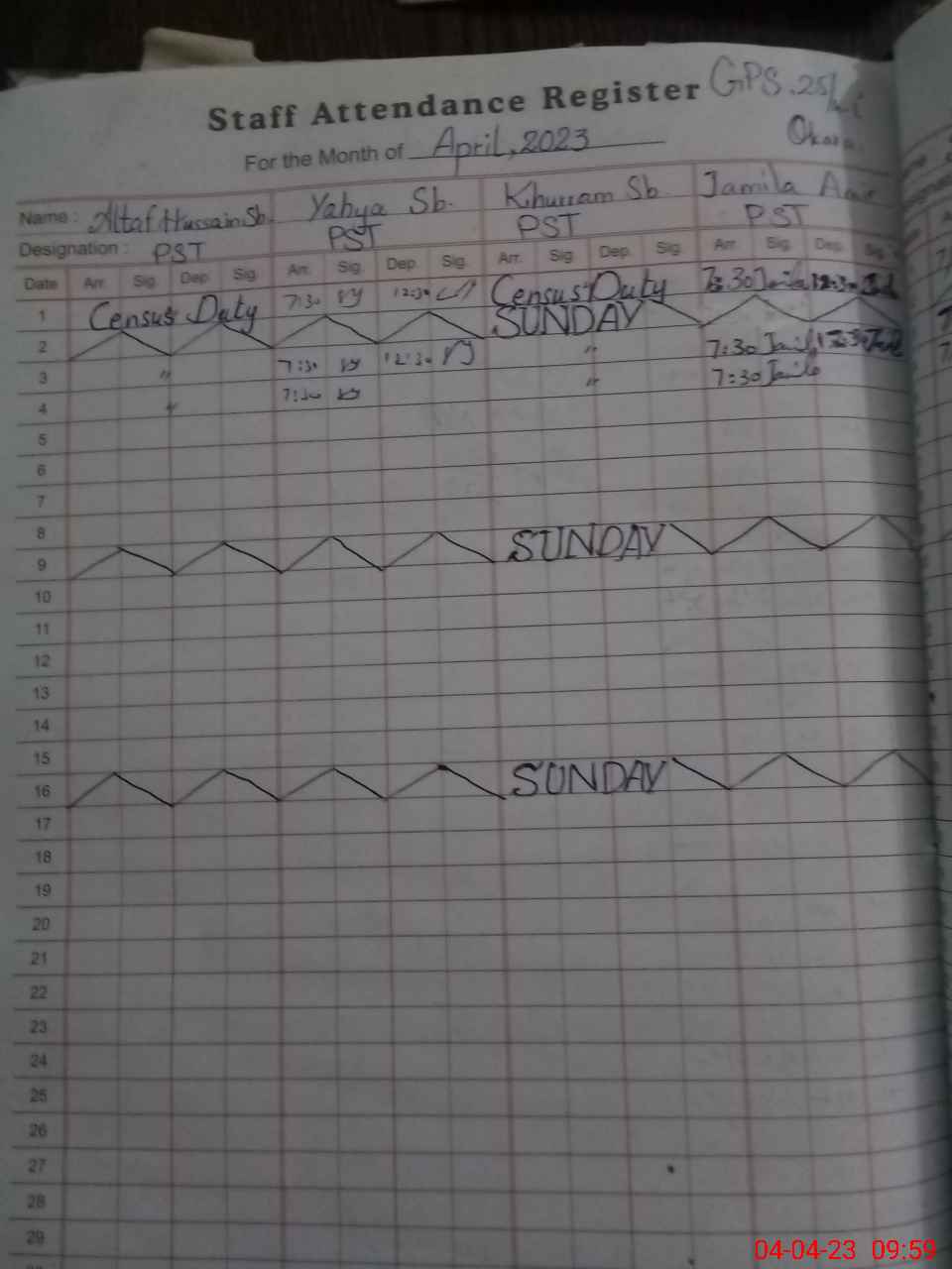 | Name: KH**** SH**** Designation: (School Headmaster's/Headmistress's) PST Phone/Cell Number: 03**** |