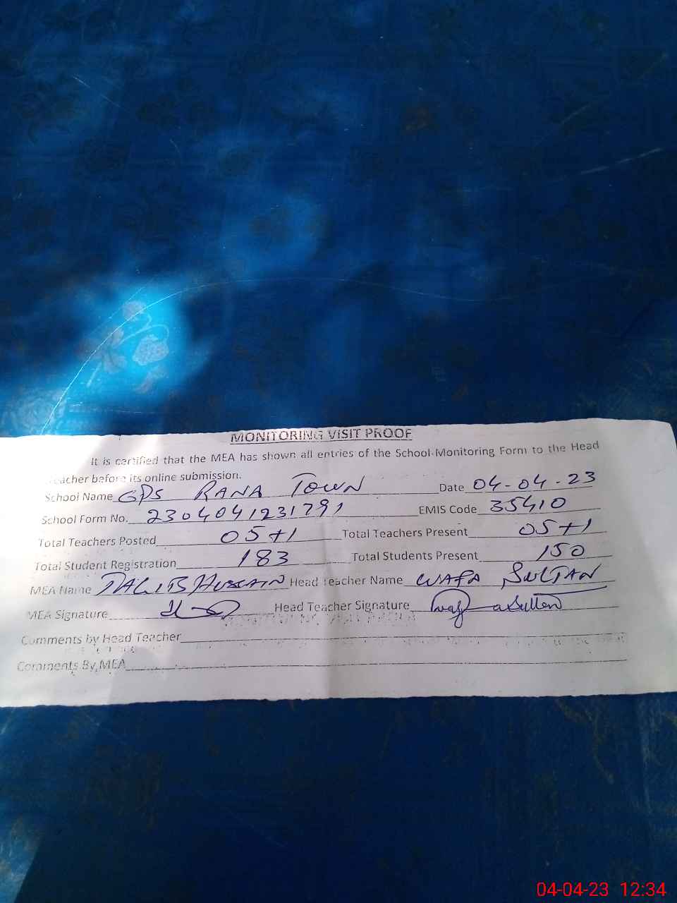 | EMIS Code: 35410164 | Name of School: GPS RANA TOWN | |||