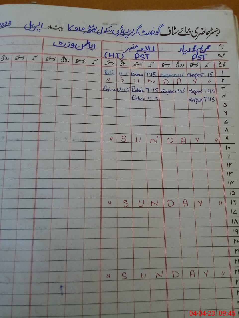 | Name: Ra**** Mu**** Designation: (School Headmaster's/Headmistress's) PST Phone/Cell Number: 03**** |