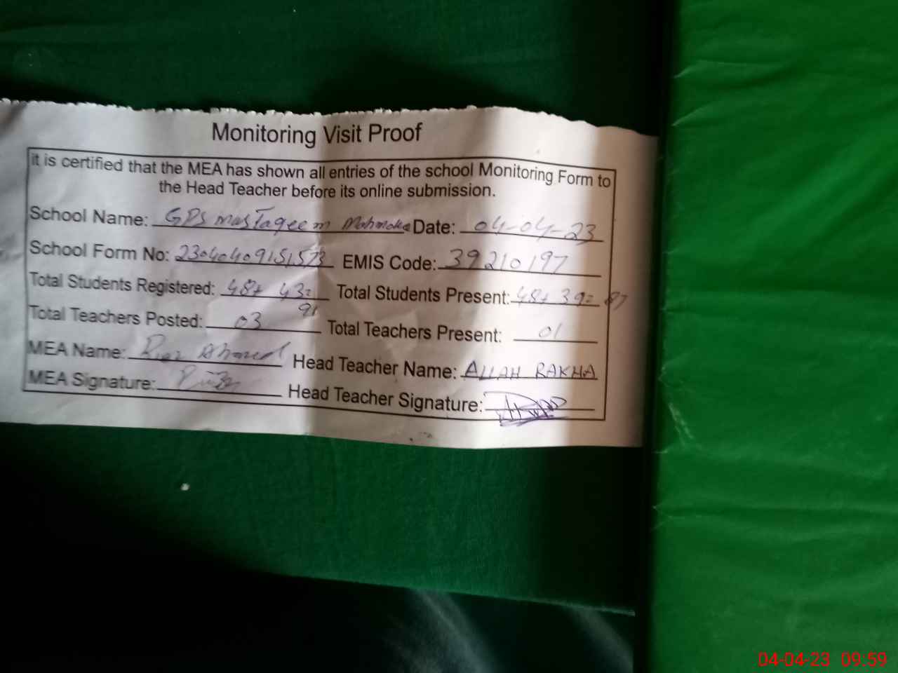 | EMIS Code: 39210197 | Name of School: GPS MUSTAQEEM MAHMONKA P/O PAKPATTAN | |||