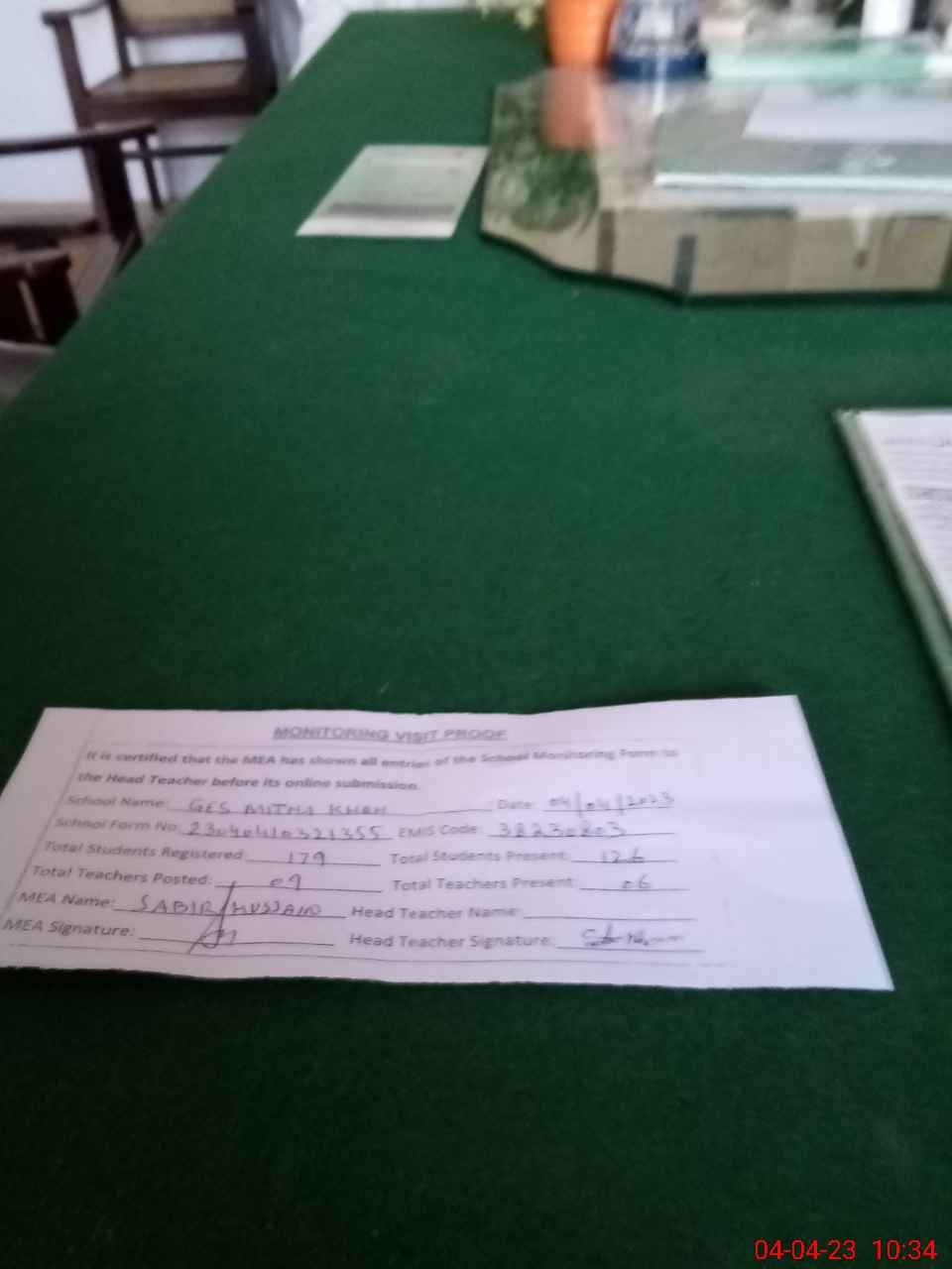 | EMIS Code: 38230803 | Name of School: GHS MITHA KHOH | |||