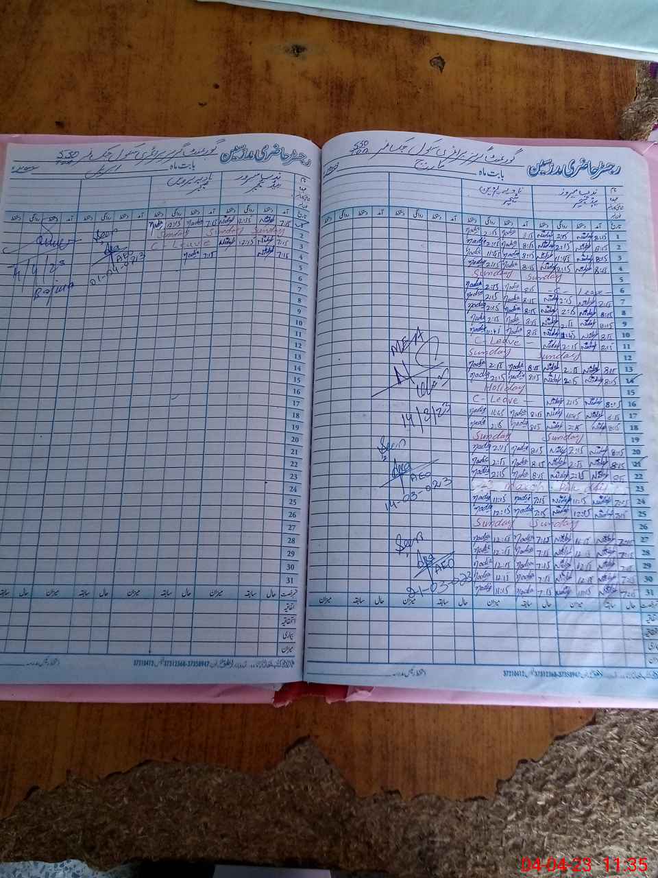 | CNIC | Full Name | Designation | R/C | Absence During Last Calender Month |