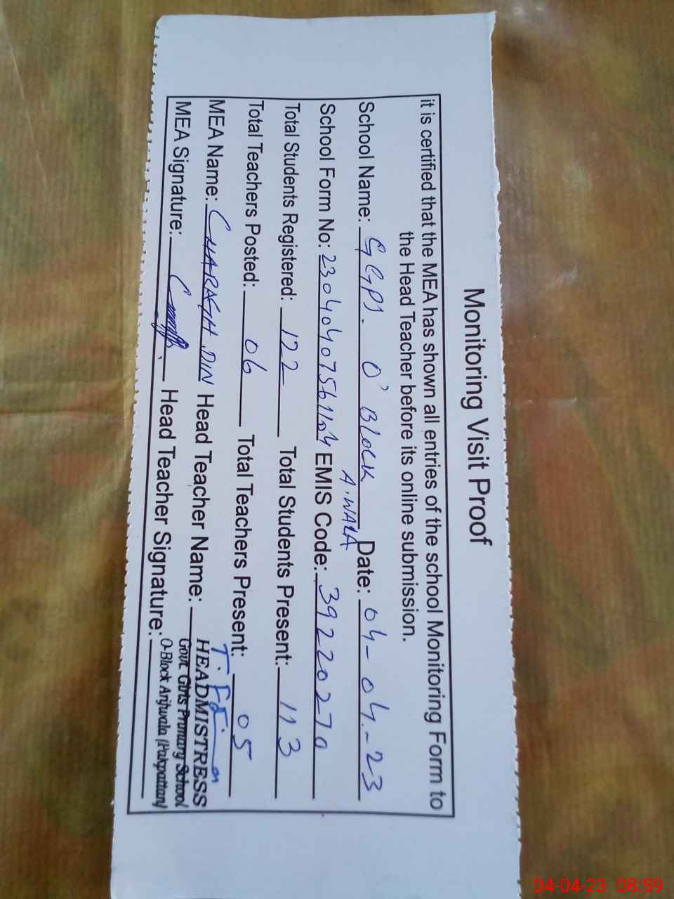 | EMIS Code: 39220270 | Name of School: GGPS SHARIF MOHALLA O-BLOCK | |||