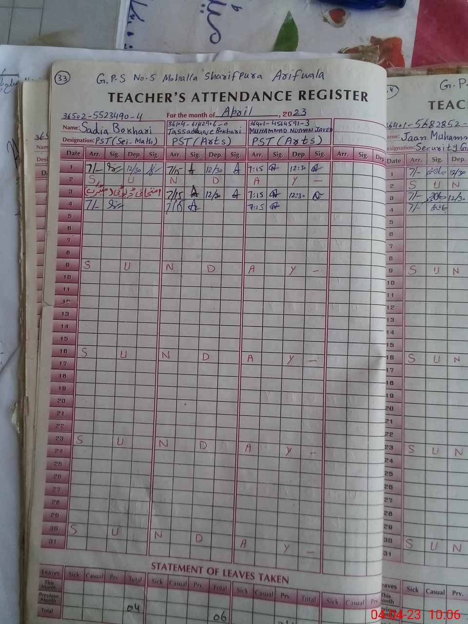 | Name: MU**** NA**** Designation: (School Headmaster's/Headmistress's) PST Phone/Cell Number: 03**** |