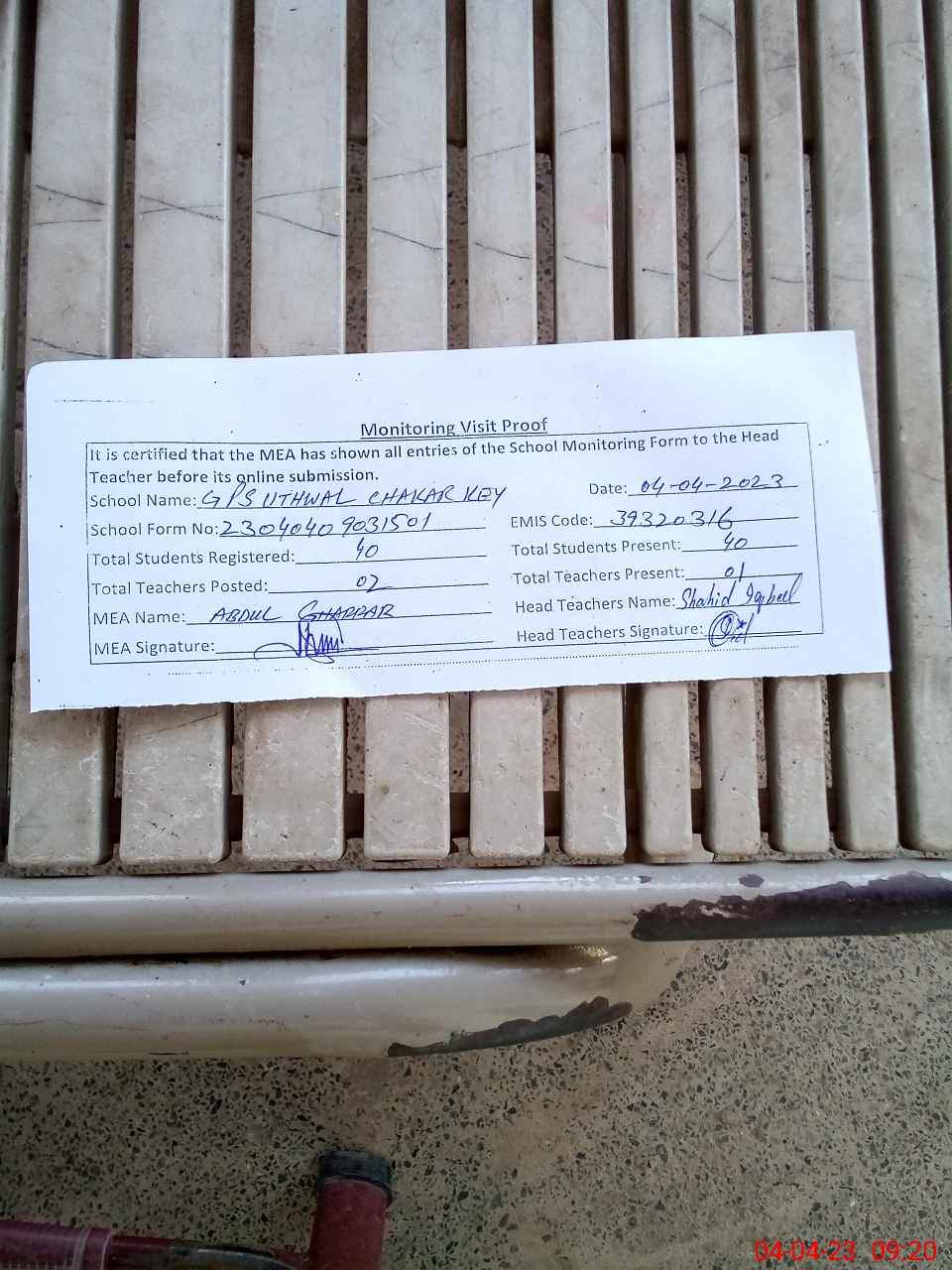 | EMIS Code: 39320316 | Name of School: GPS UTHWAL CHAKAR KAY | |||