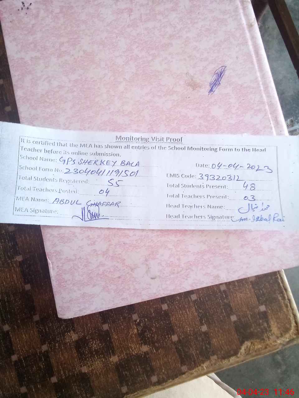 | EMIS Code: 39320312 | Name of School: GPS SHER KAY BALA | |||