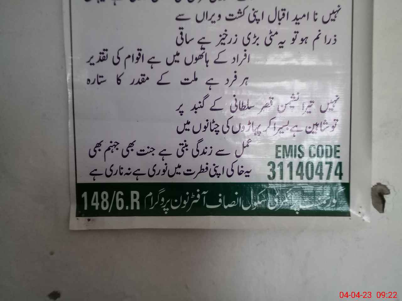| District: BAHAWALNAGAR | Tehsil: HAROONABAD | Markaz: HND-11-FEMALE | Level: Primary | |