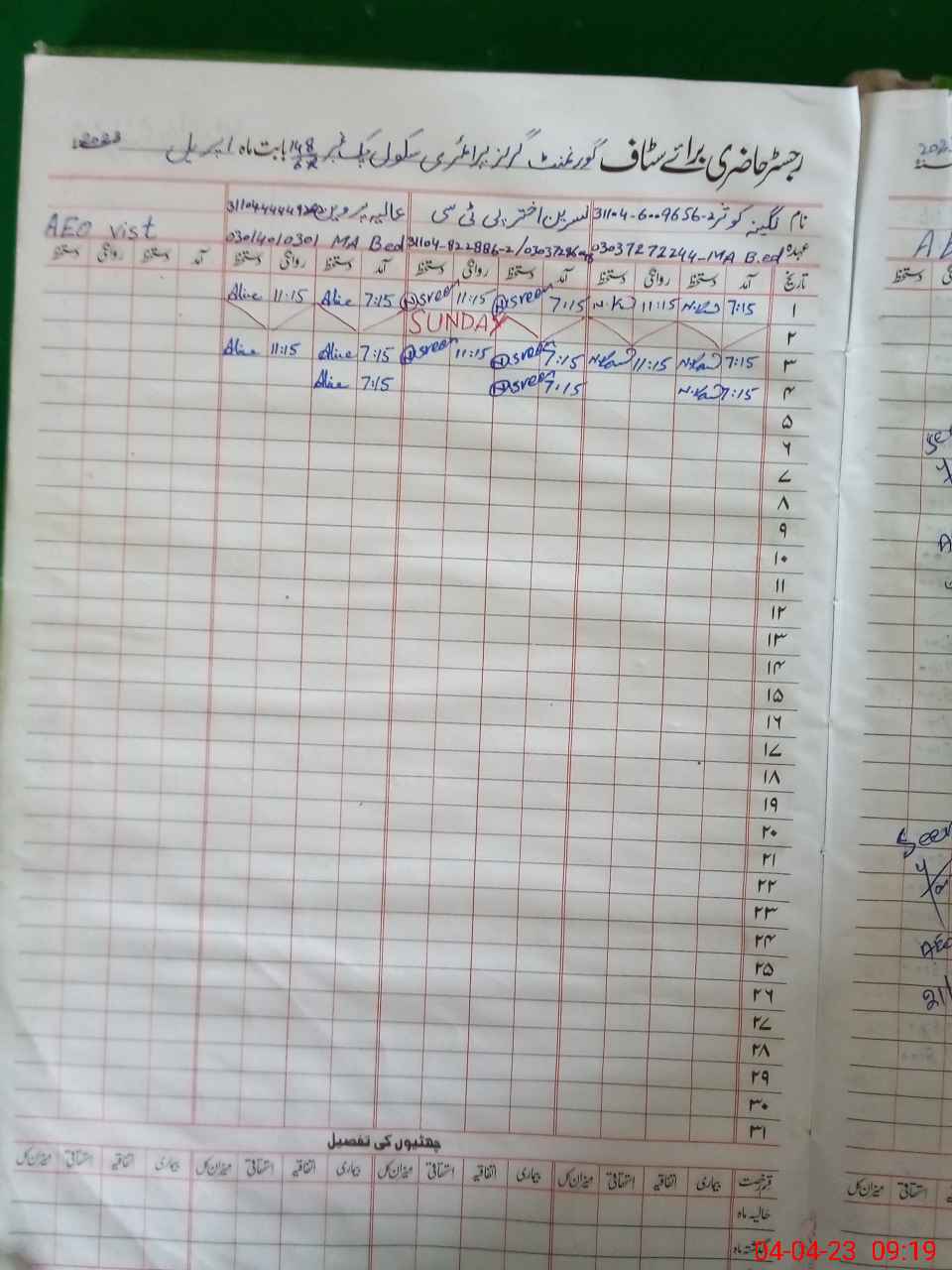 | Name: Al**** Pa**** Designation: (School Headmaster's/Headmistress's) PST Phone/Cell Number: 03**** |
