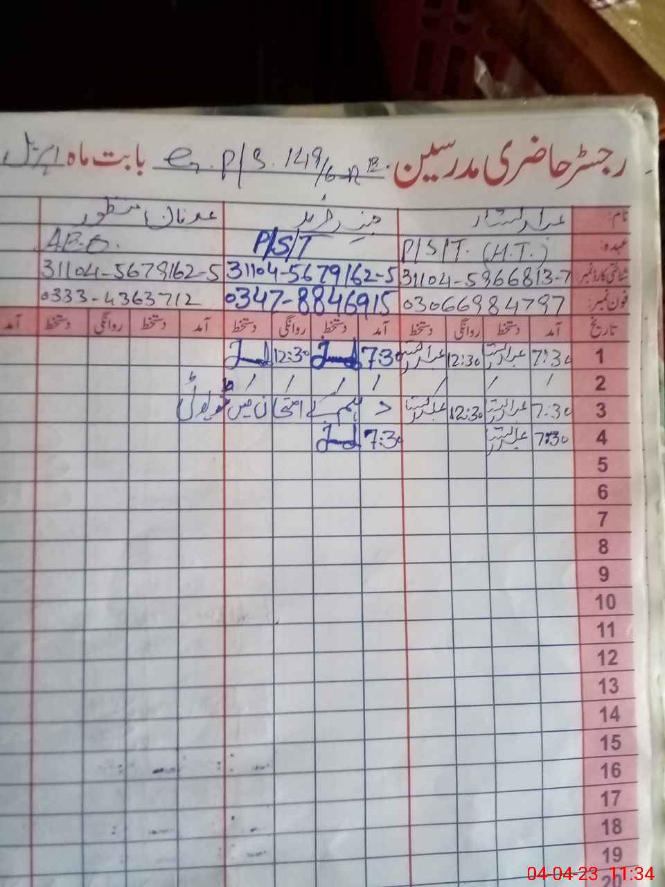 | Name: AB**** SA**** Designation: (School Headmaster's/Headmistress's) PTC Phone/Cell Number: 03**** |