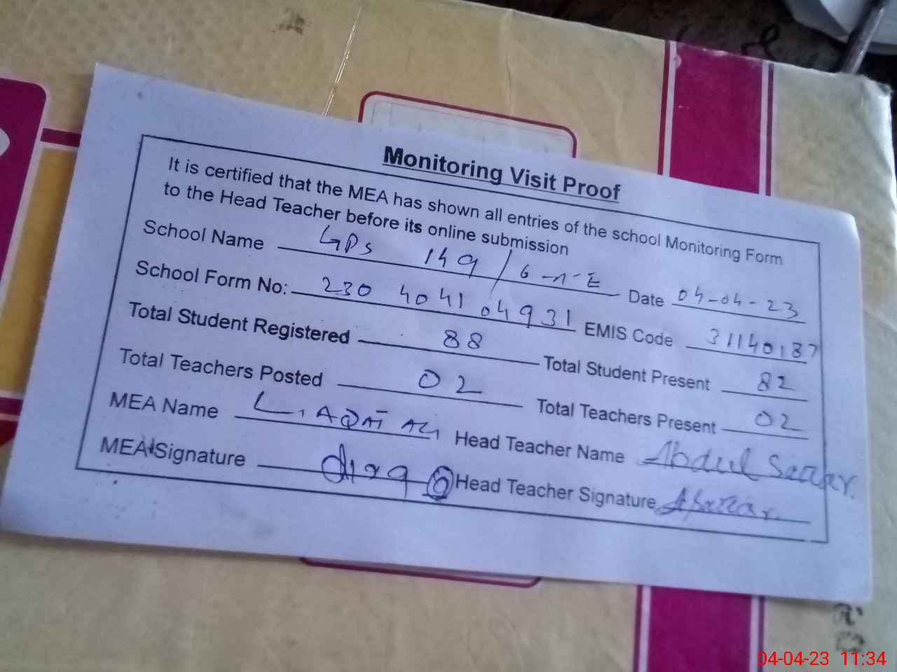 | EMIS Code: 31140187 | Name of School: GPS CHAK 149/6-R (E) | |||