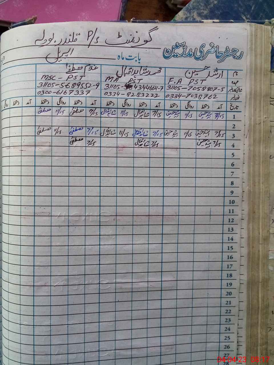 | Name: MU**** Sh**** Iq**** Designation: (School Headmaster's/Headmistress's) PST Phone/Cell Number: 03**** |