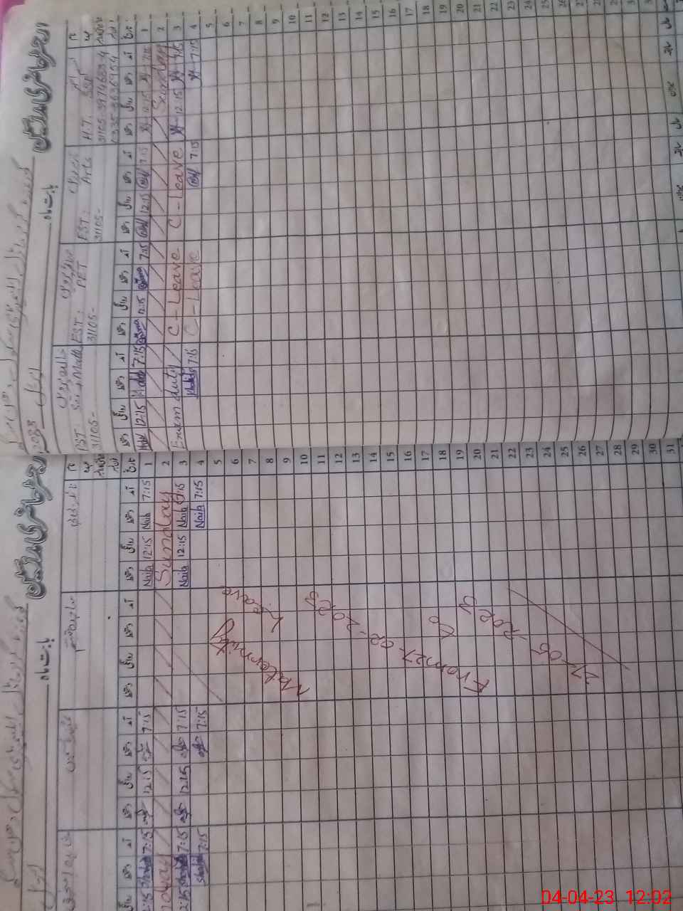 | Leave | Duty | Absent | Maternity | Medical | Ex- Pak |