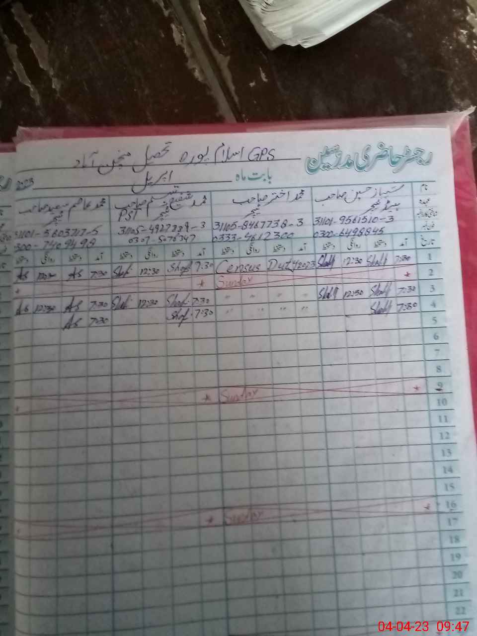 | Name: MSh**** Designation: (School Headmaster's/Headmistress's) PST Phone/Cell Number: 03**** |