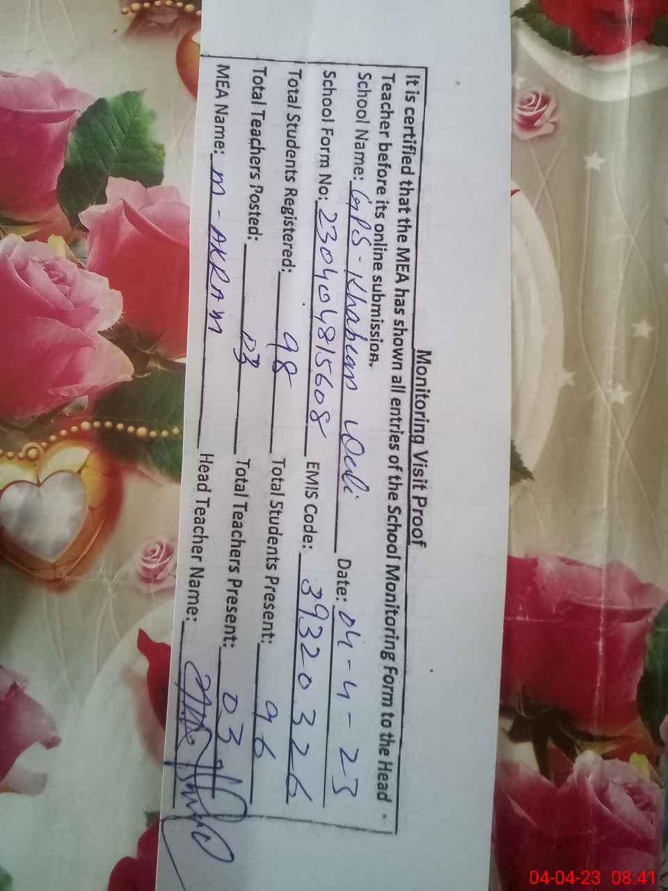 | EMIS Code: 39310326 | Name of School: GPS KABIAN WALI | |||