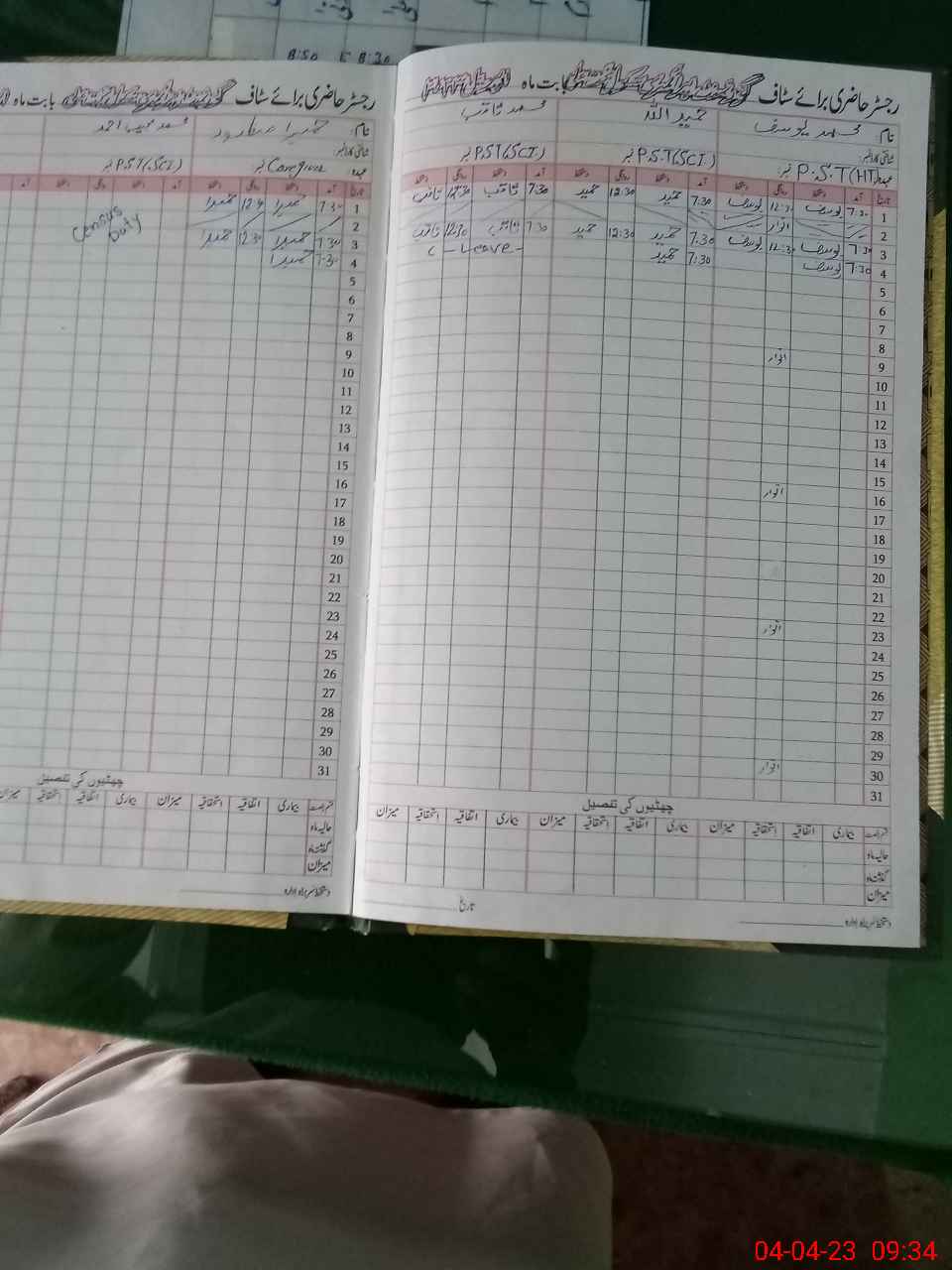| CNIC | Full Name | Designation | R/C | Absence During Last Calender Month |
