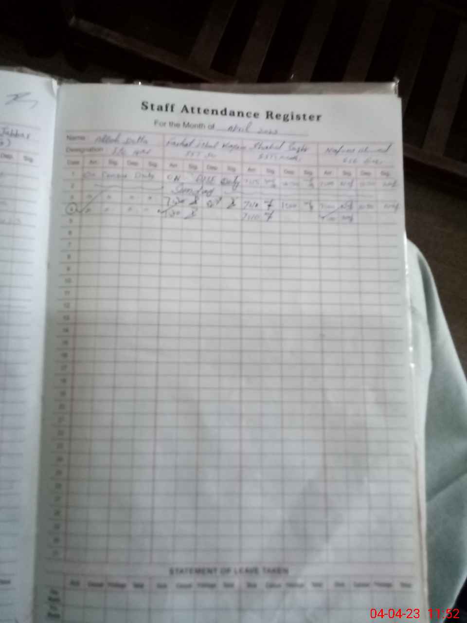 | Leave | Duty | Absent | Maternity | Medical | Ex- Pak |