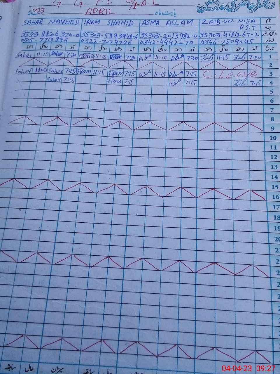 | CNIC | Full Name | Designation | R/C | Absence During Last Calender Month |