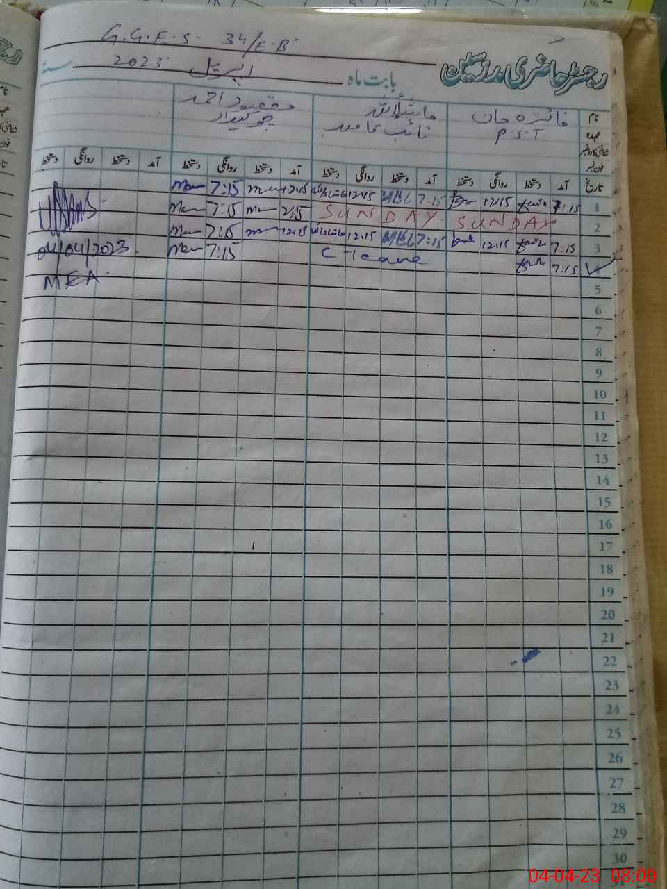 | 36**** | Sa**** Kh**** | Regular | 2 | 1 | 0 | 0 | 0 | 0 | 0 | 0 | 2 | Exam Duty | |