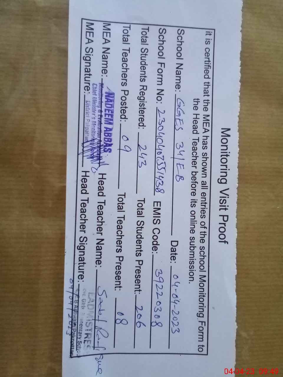 | EMIS Code: 39220308 | Name of School: GGES 34 EB P.O 34 EB | |||