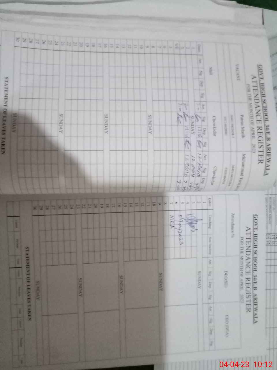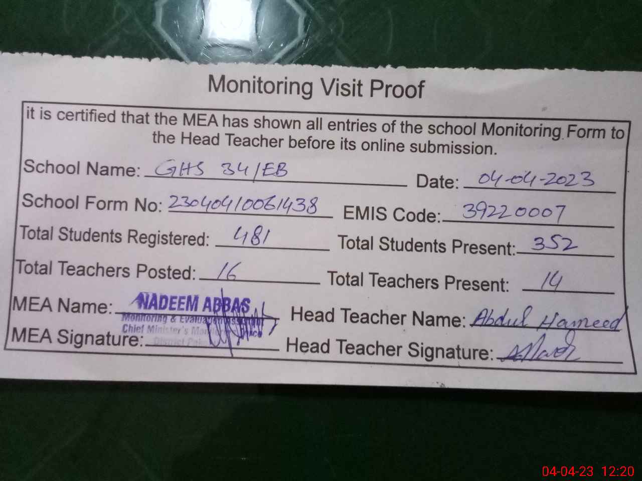 | EMIS Code: 39220007 | Name of School: GHS 34 EB ARIF WALA | |||