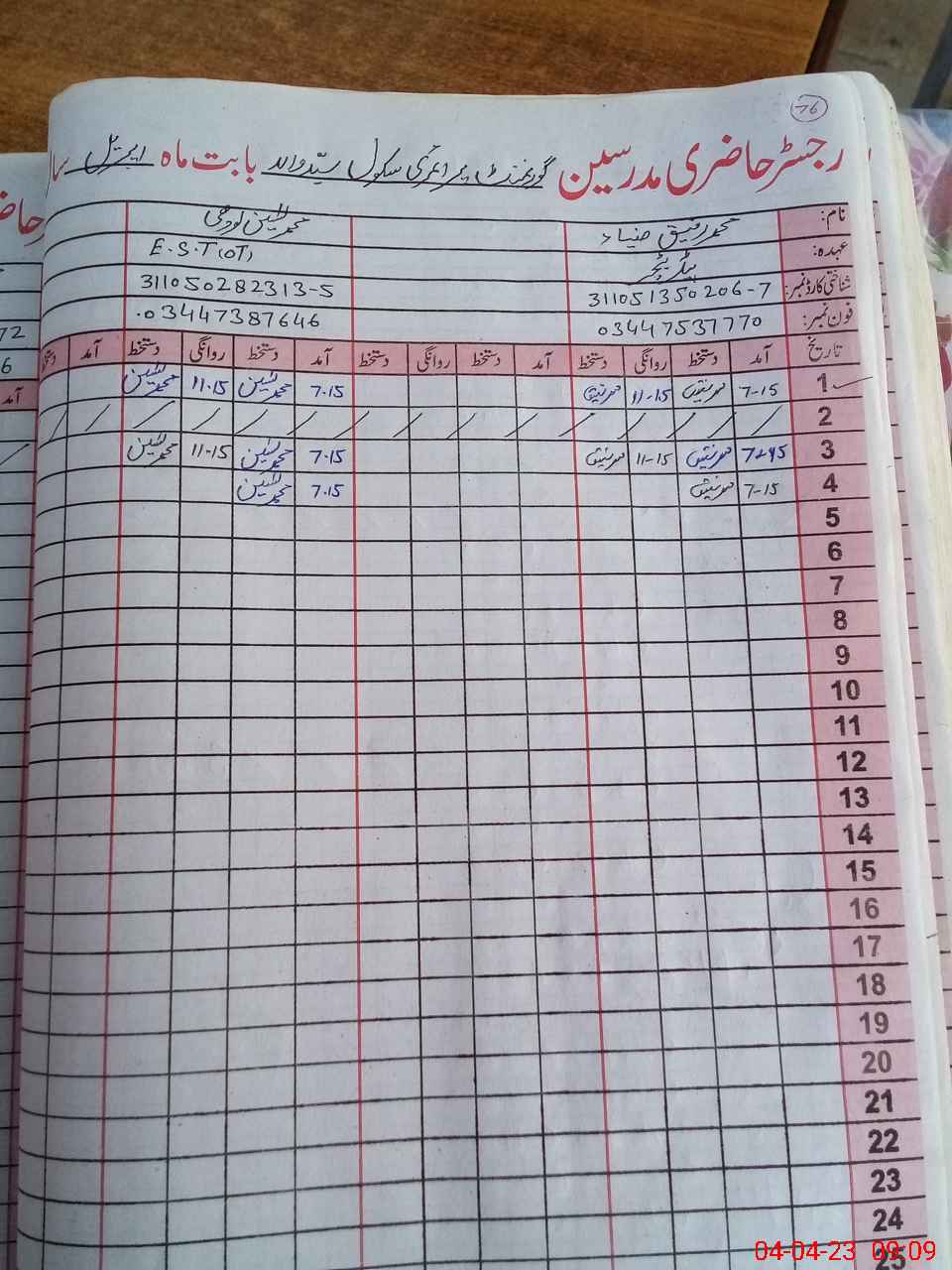 | Name: MU**** Ta**** Designation: (School Headmaster's/Headmistress's) P S T Phone/Cell Number: 03**** |