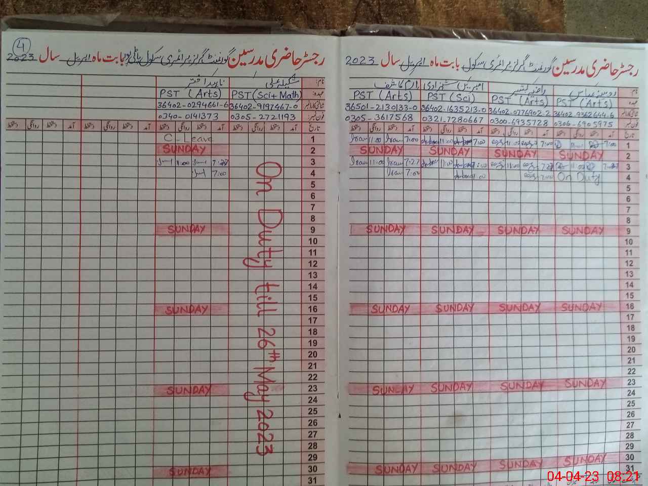 | Leave | Duty | Absent | Maternity | Medical | Ex- Pak |