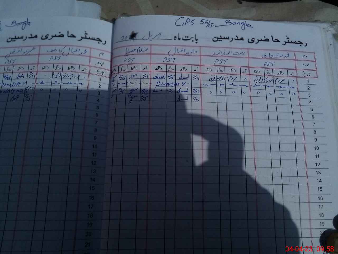 | CNIC | Full Name | Designation | R/C | Absence During Last Calender Month |